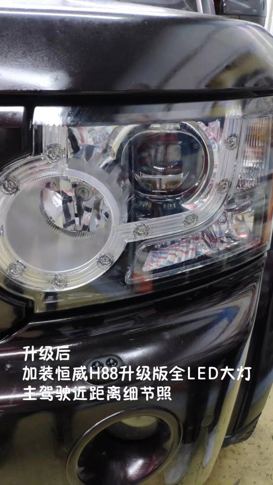 <p>路虎-發(fā)現4,V8發(fā)動(dòng)機升級恒威H88升級版全LED大燈</p><p>拆掉原車(chē)自帶法雷奧雙光氙氣透鏡</p><p>加裝恒威H88升級版全LED大燈(單只透鏡具備一個(gè)近光,2個(gè)遠光,效果僅次于激光大燈)</p><p>遠光位置保持不變</p><p>完美實(shí)現兩近六遠光</p><p>遠近光同時(shí)提升5倍以上照路效果</p>